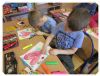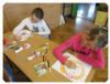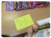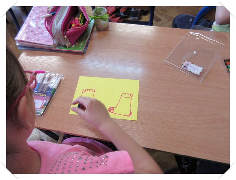 Klasy 1 wykonały prace plastyczne z wykorzystaniem szablonu skarpetki, tworząc skarpetkowy pociąg.
