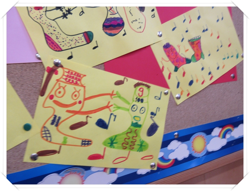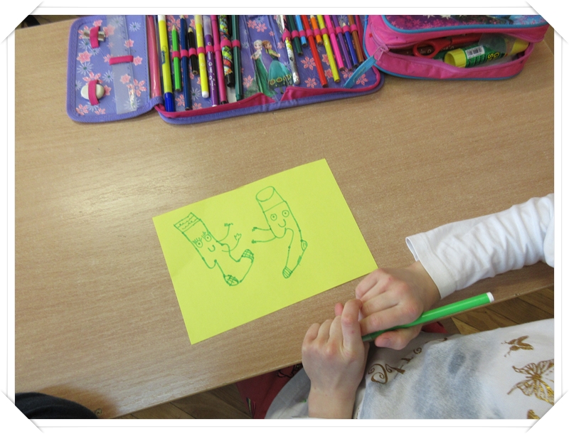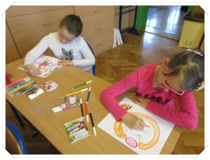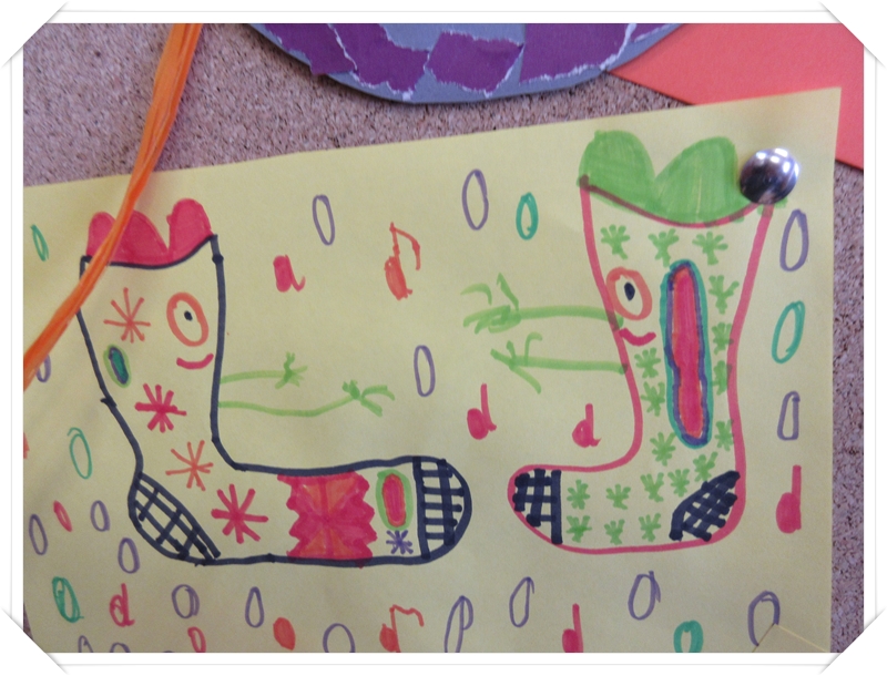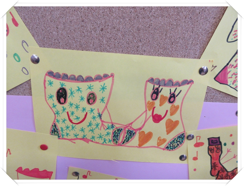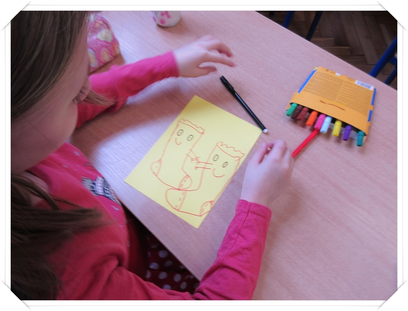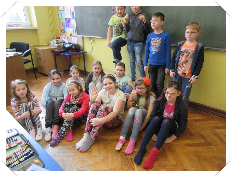 Klasy 3 obok plakatów i rysunków wykonały wesołe kukiełki ze skarpetek.