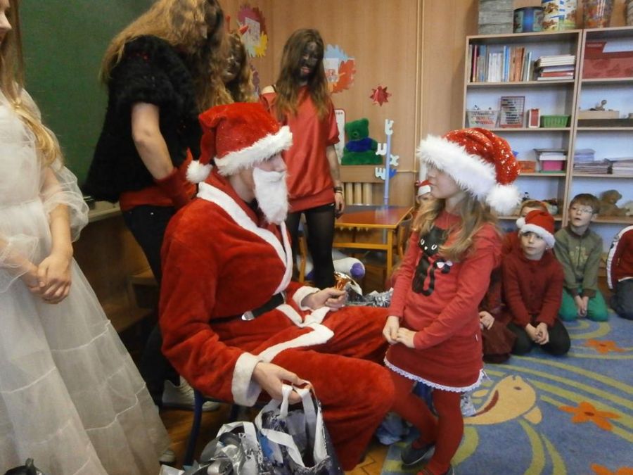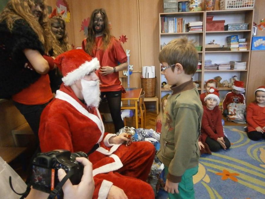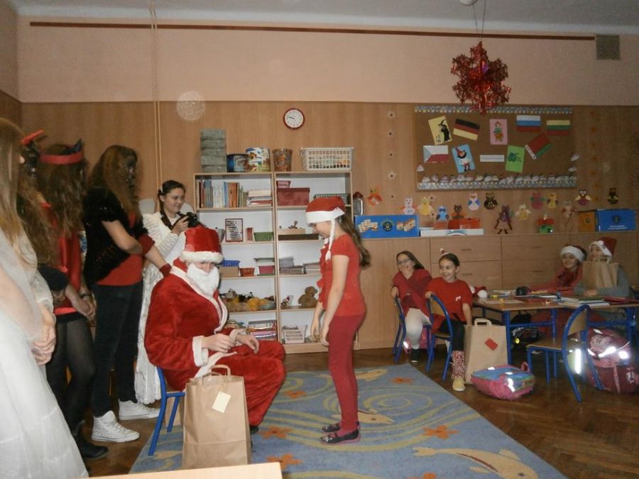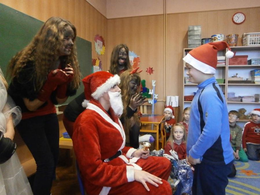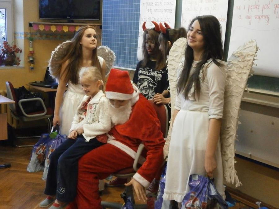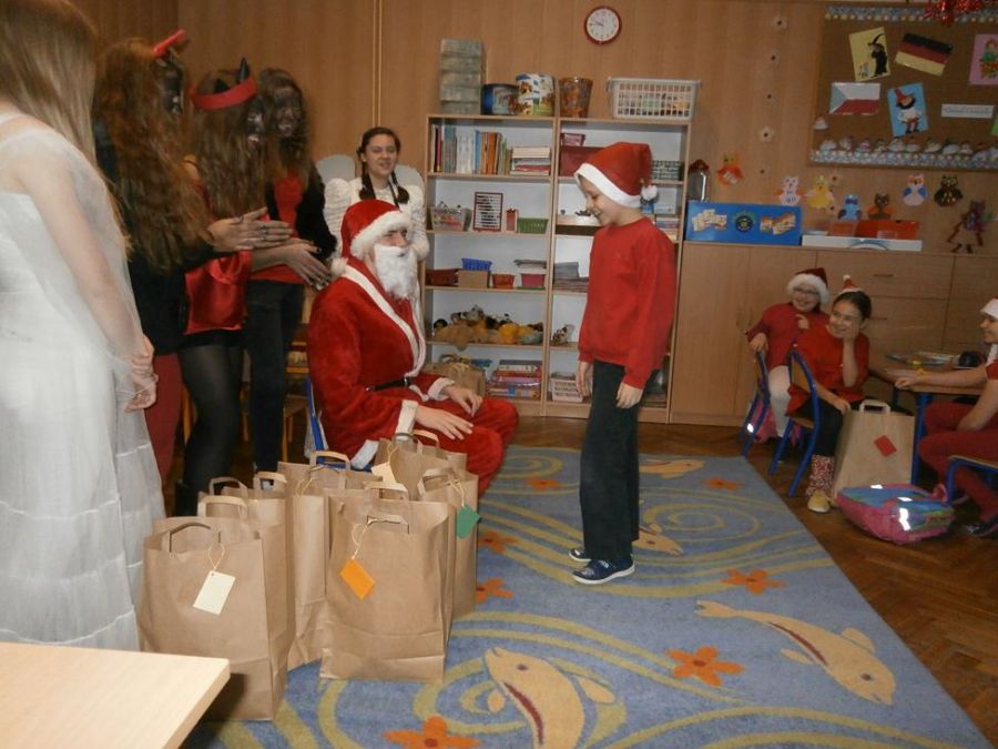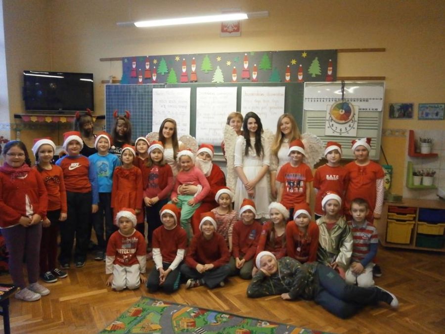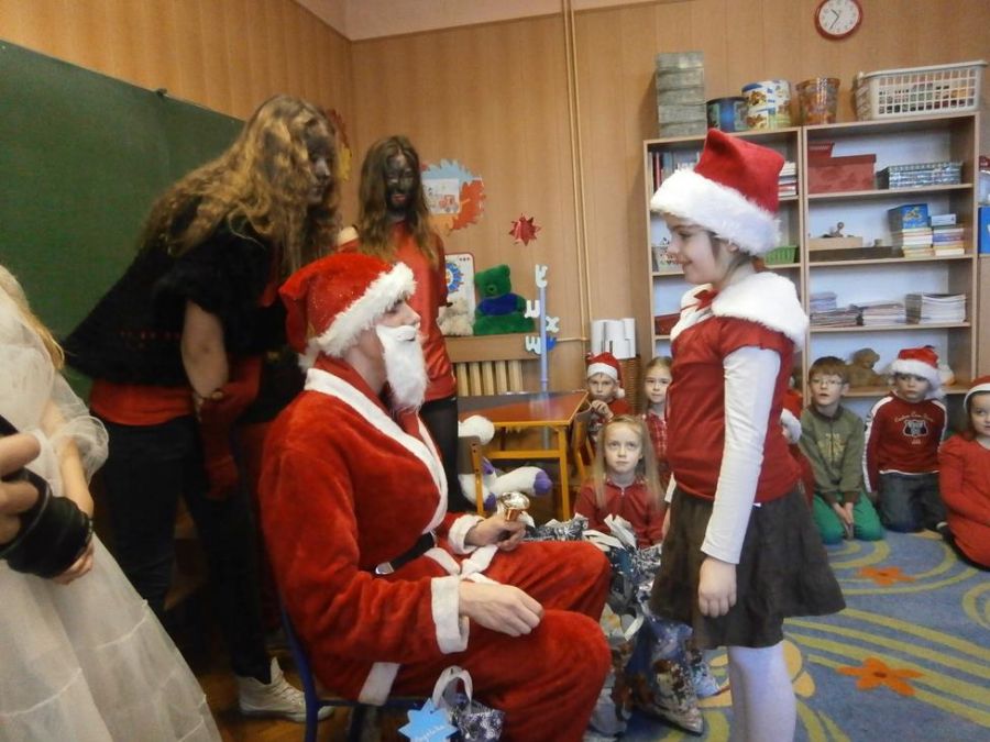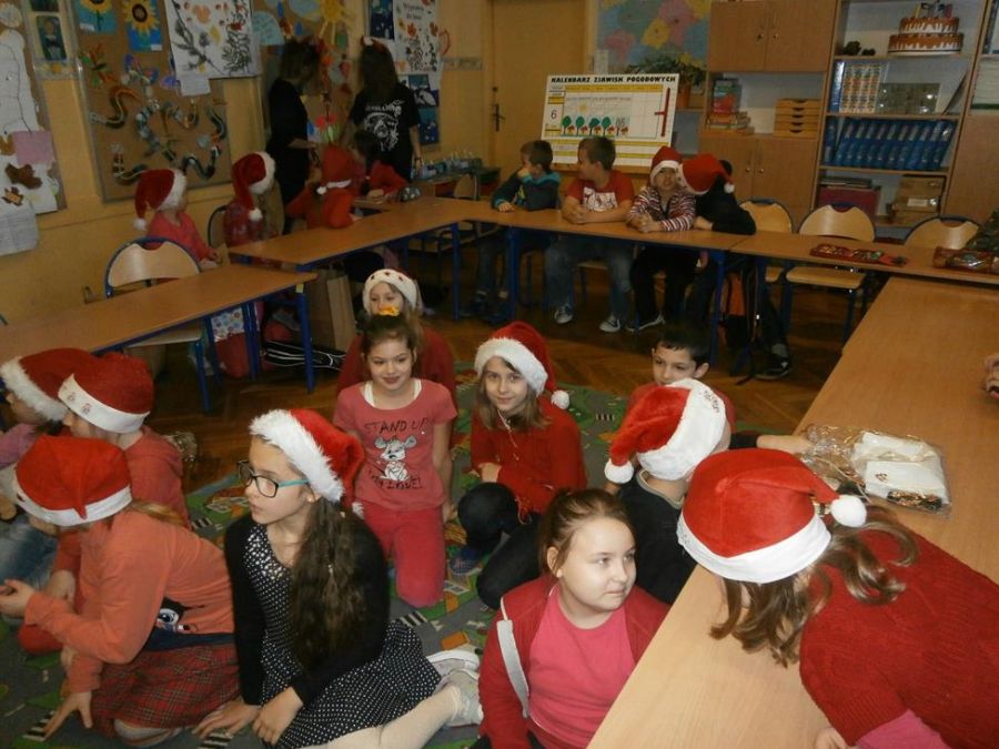 Uczniów klas 4-6 także odwiedziła ekipa Mikołaja, która obdarowała ich słodkim upominkiem.