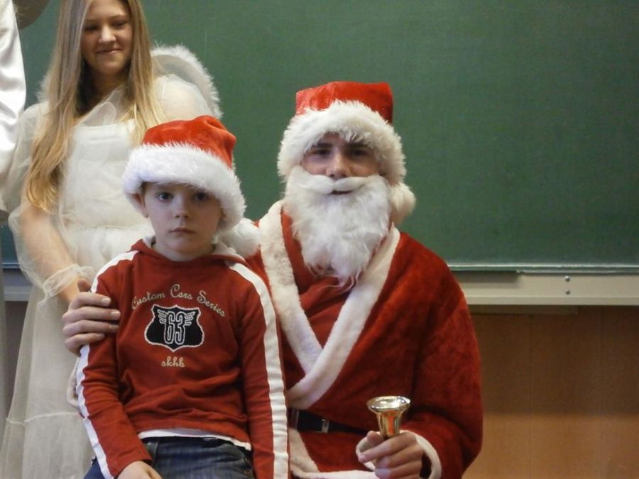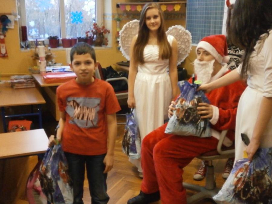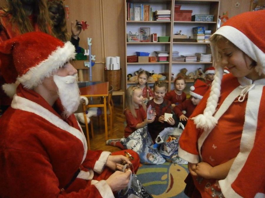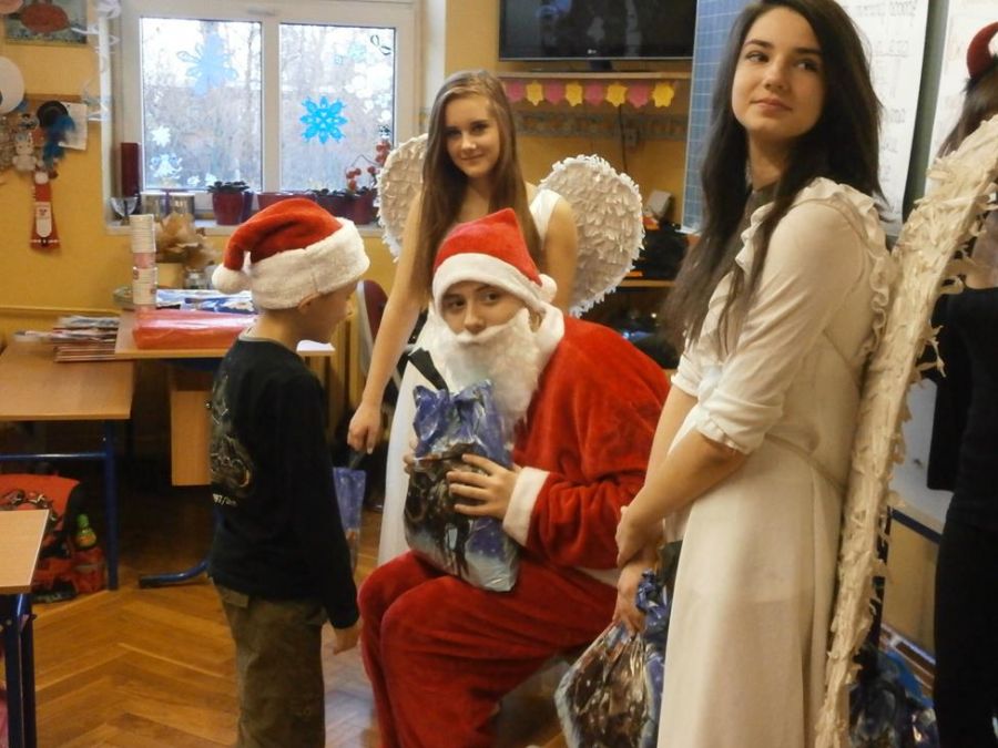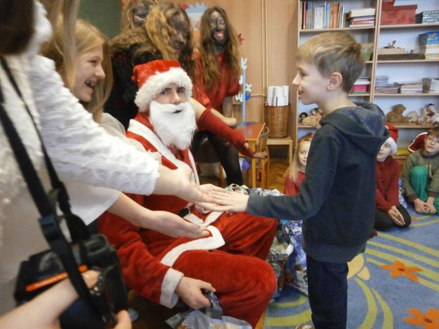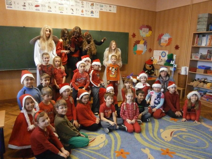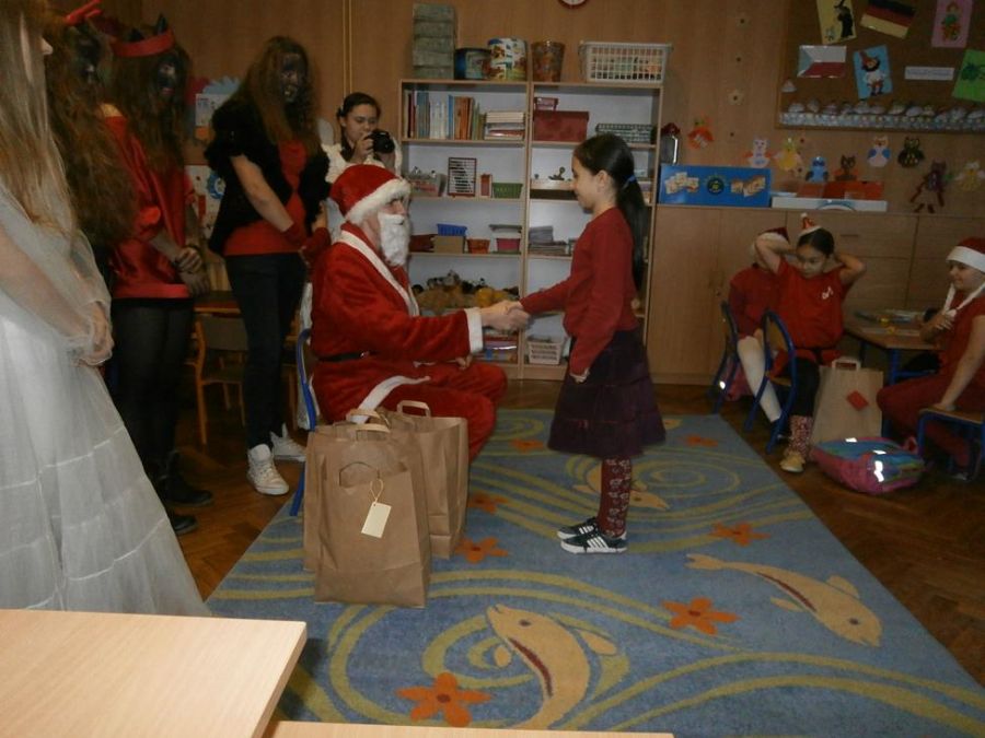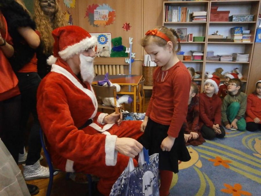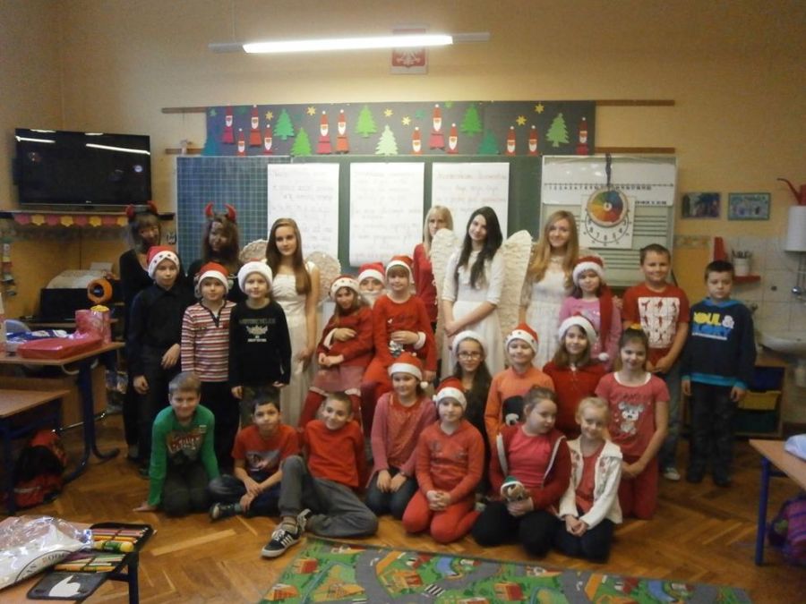 Uczniów klas 4-6 także odwiedziła ekipa Mikołaja, która obdarowała ich słodkim upominkiem.