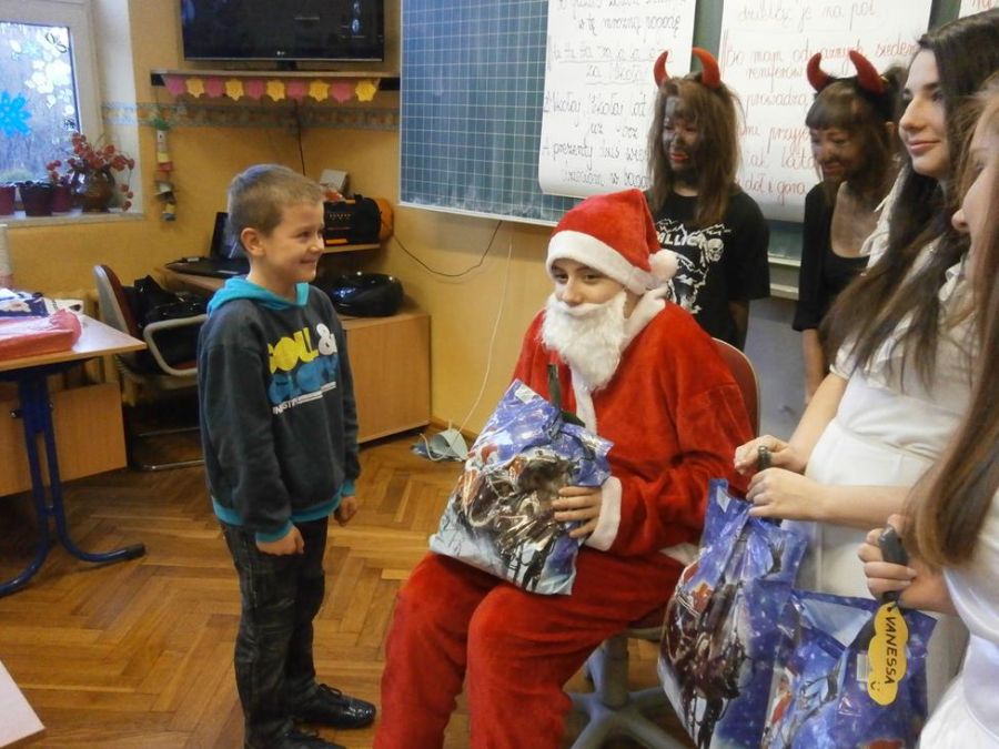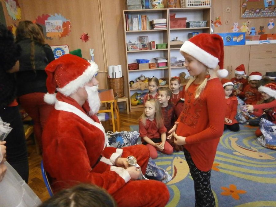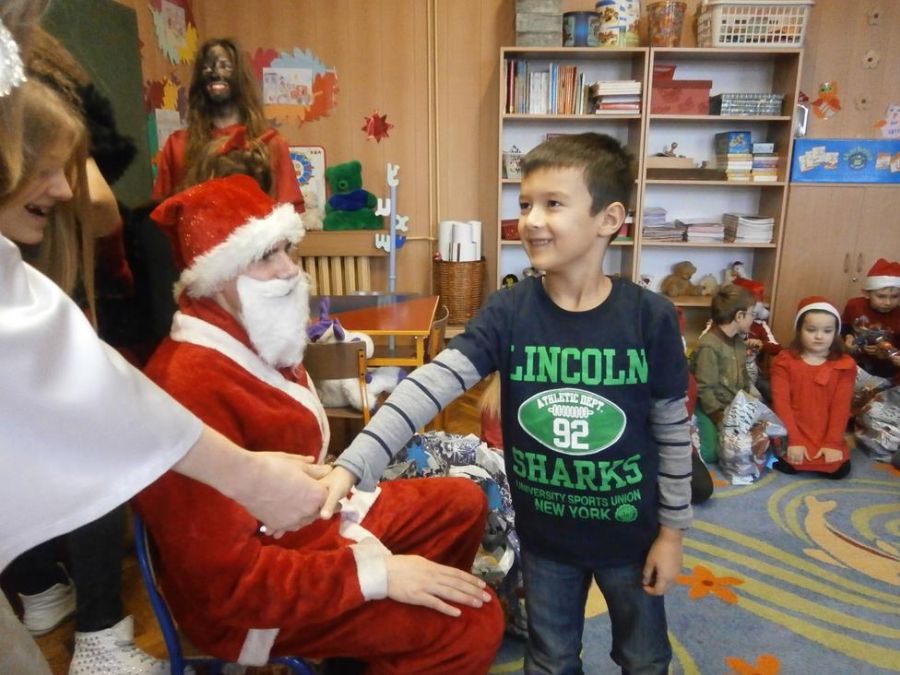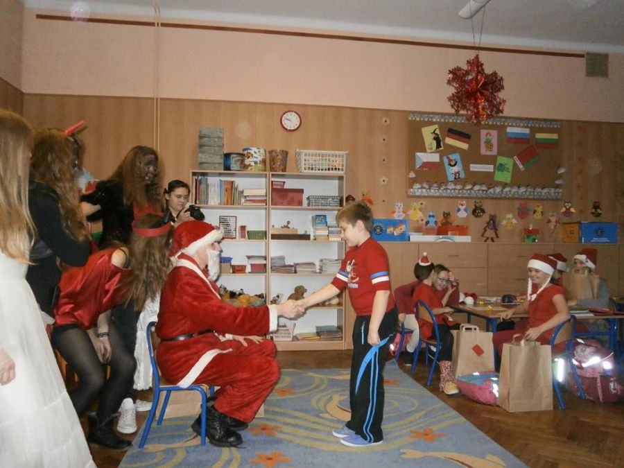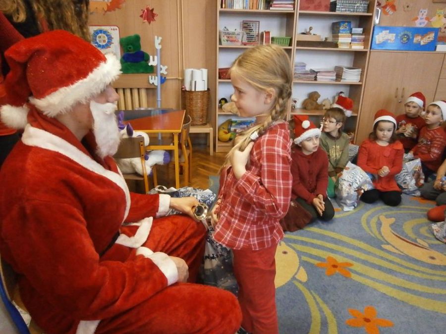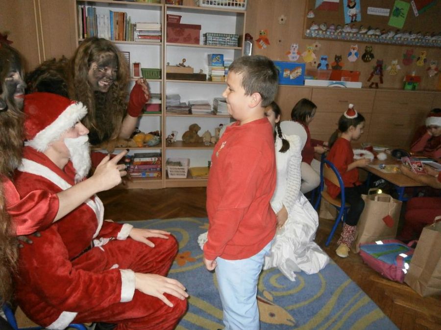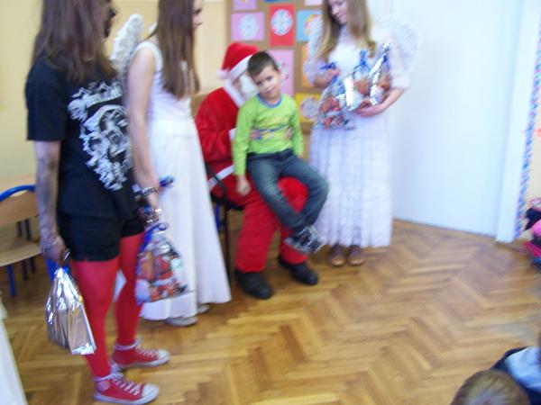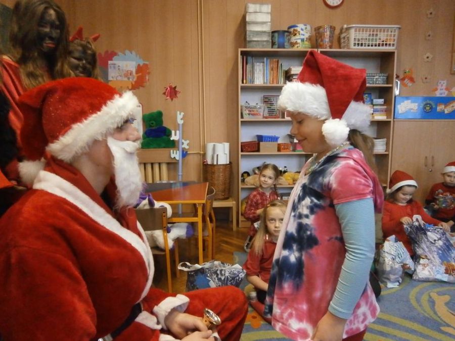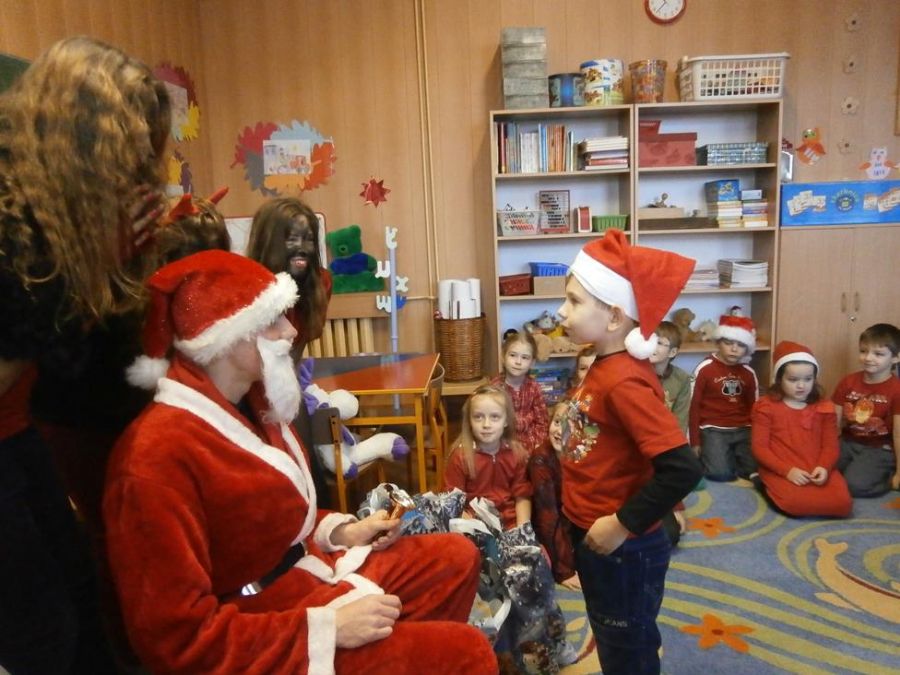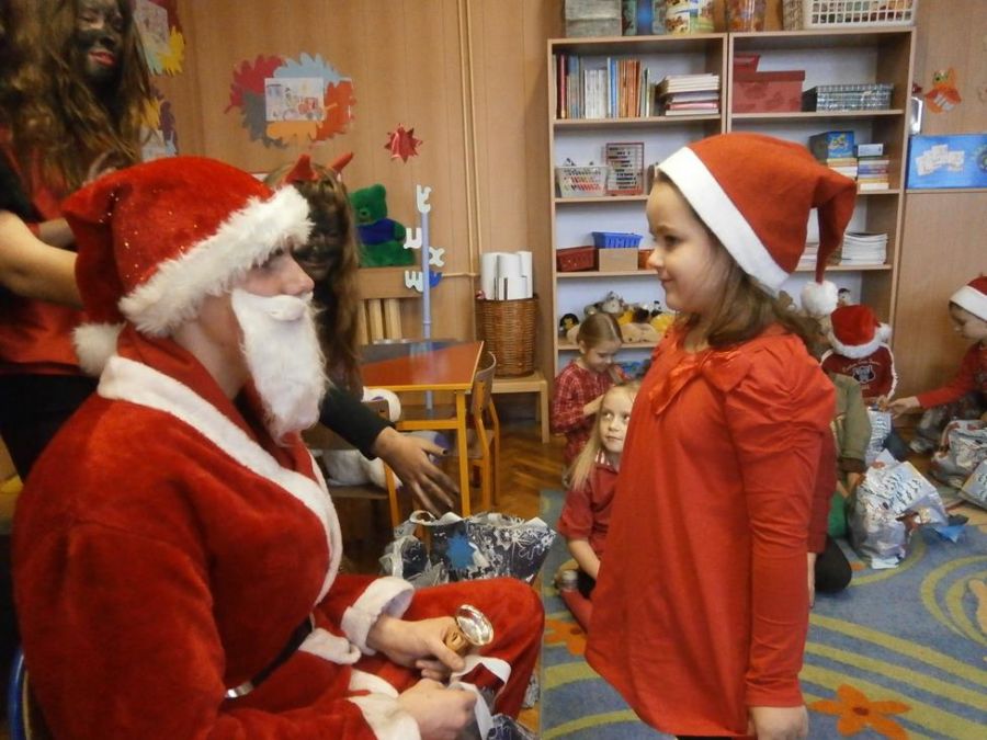 Uczniów klas 4-6 także odwiedziła ekipa Mikołaja, która obdarowała ich słodkim upominkiem.