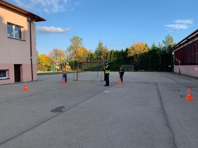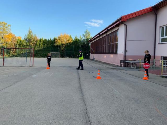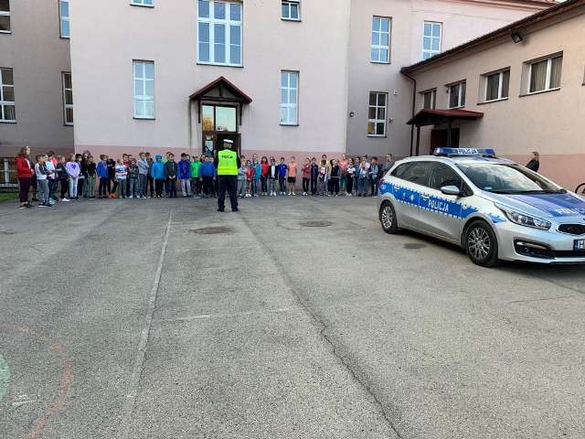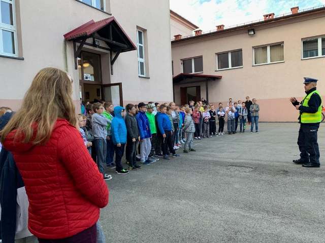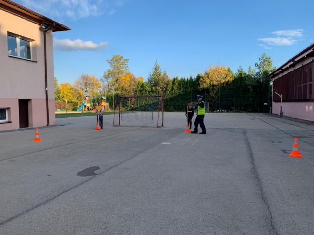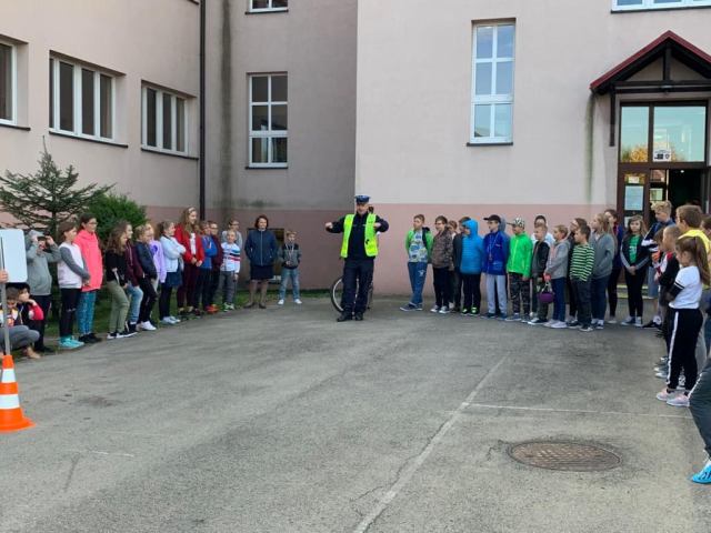 W ramach lekcji techniki, uczniów klas 5. odwiedził policjant. Były to zajęcia rozpoczynające naukę na kartę rowerową, którą dzieci będą zdawać pod koniec roku szkolnego.