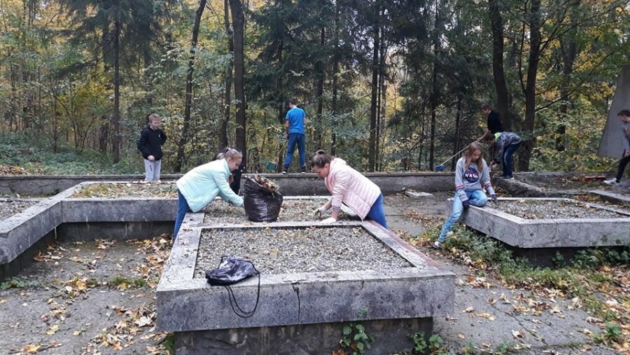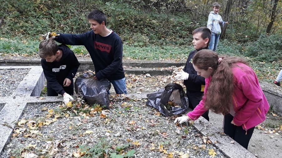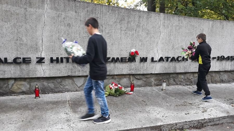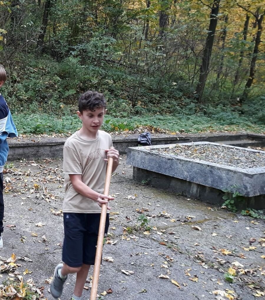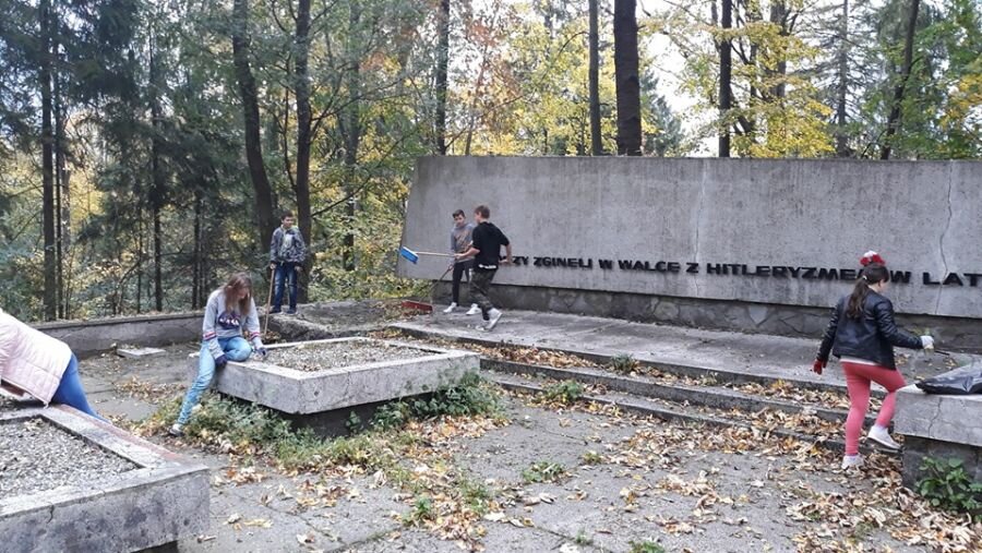 Klasa 7b z zapałem ruszyła dziś pod Grabówkę, aby zadbać o zapomniane pomniki w Goleszowie. Uczniowie zagrabili liście i posprzątali śmieci. Na koniec złożyli wieniec i zapalili znicze, by oddać hołd poległym w 1945 roku.