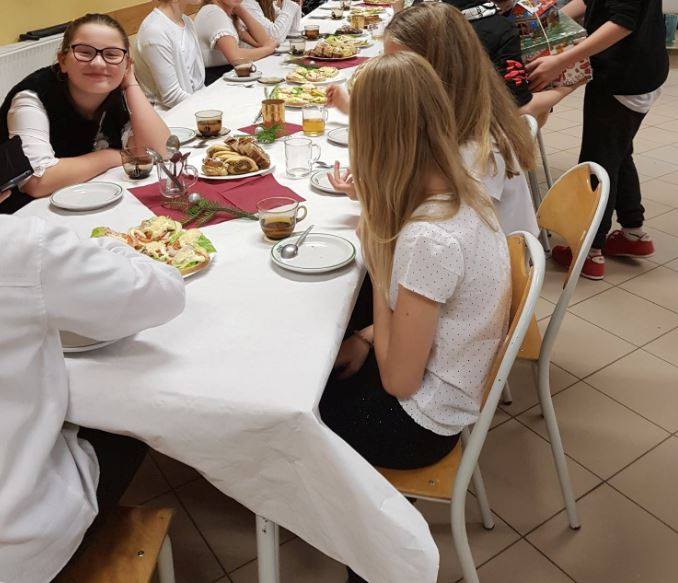 Poniedziałkowy wieczór był właśnie takim czasem. Mogliśmy ugościć w naszej szkole wychowanków z Domu Dziecka w Międzyświeciu. W świątecznie udekorowanej sali można było poczuć magię nadchodzących Świąt. Była choinka z prezentami, światło świec, świąteczne wypieki i pyszne kanapki.