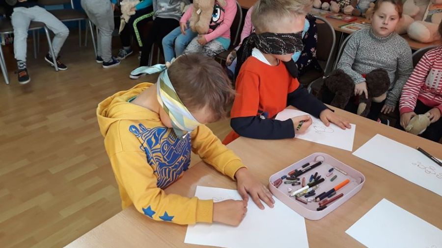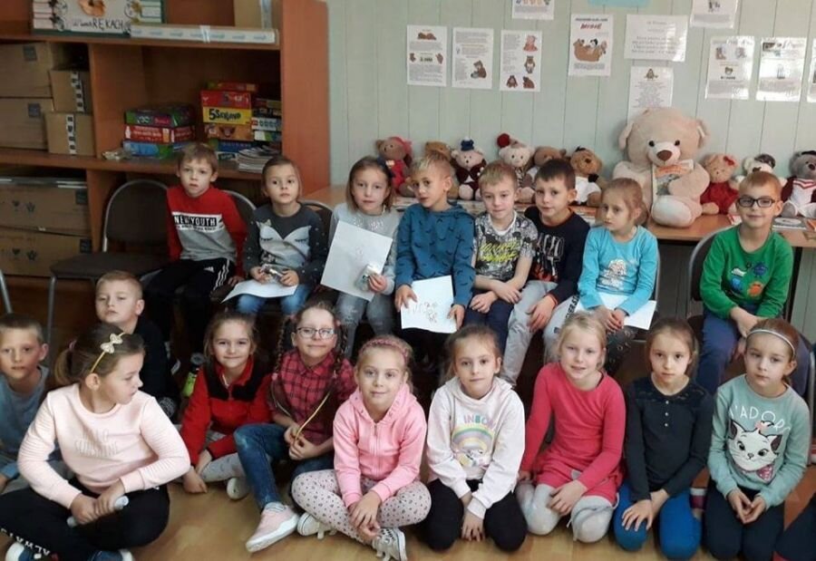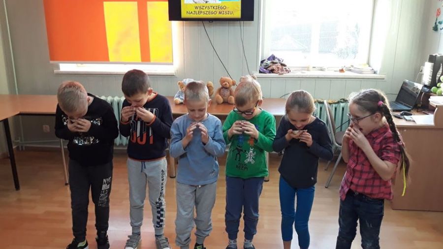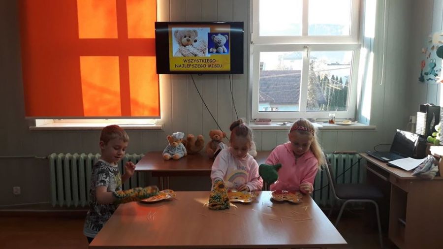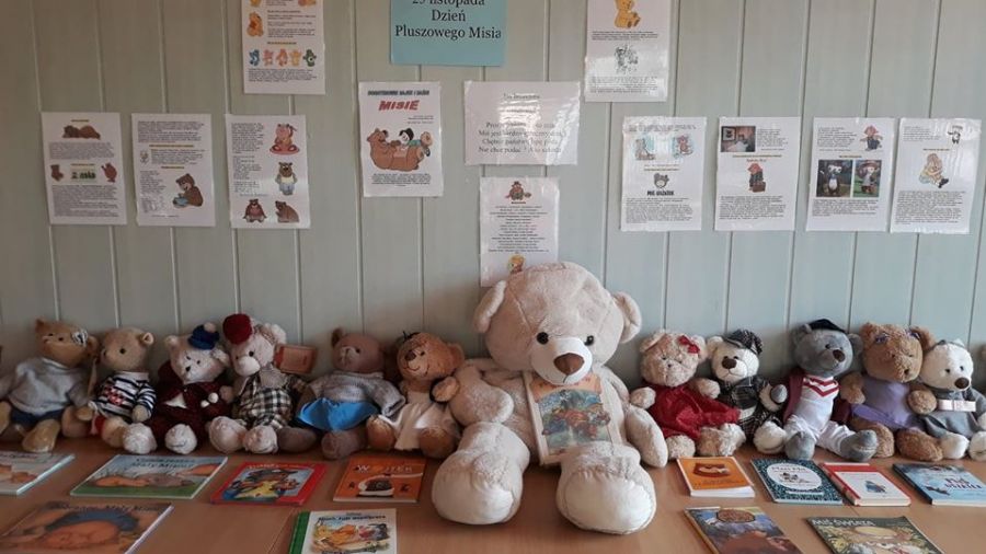 25 listopada do wspólnej zabawy z misiami biblioteka szkolna zaprosiła uczniów klas pierwszych. Mali goście zapoznali się z historią powstania pierwszego pluszowego misia, przypomnieli sobie w jakich bajkach występują te sympatyczne maskotki. Wysłuchali także fragmentu audiobook’a pt.: „Pamiętnik Czarnego Noska”. Najwięcej frajdy sprawiły pierwszakom różnorodne konkurencje – rysowanie misia z zamkniętymi oczami, wyjadanie miodku z talerzyka oraz zbieranie wykałaczek kuchenną rękawicą. W przerwie między zadaniami nauczyli się krótkiej rymowanki o niedźwiadku. Podczas quizu mogli wykazać się wiedzą na temat zwyczajów niedźwiedzi. Na koniec spotkania goście obejrzeli wystawę misiów oraz książek, których bohaterami są te wspaniałe zwierzaki.
