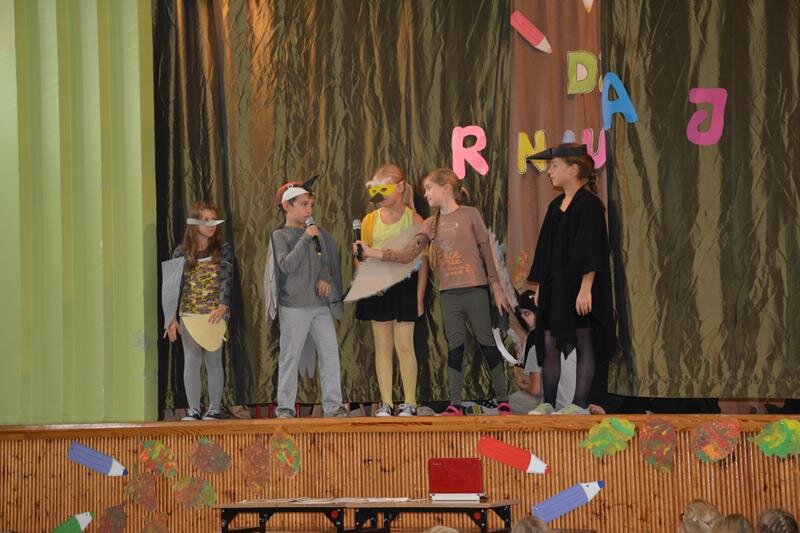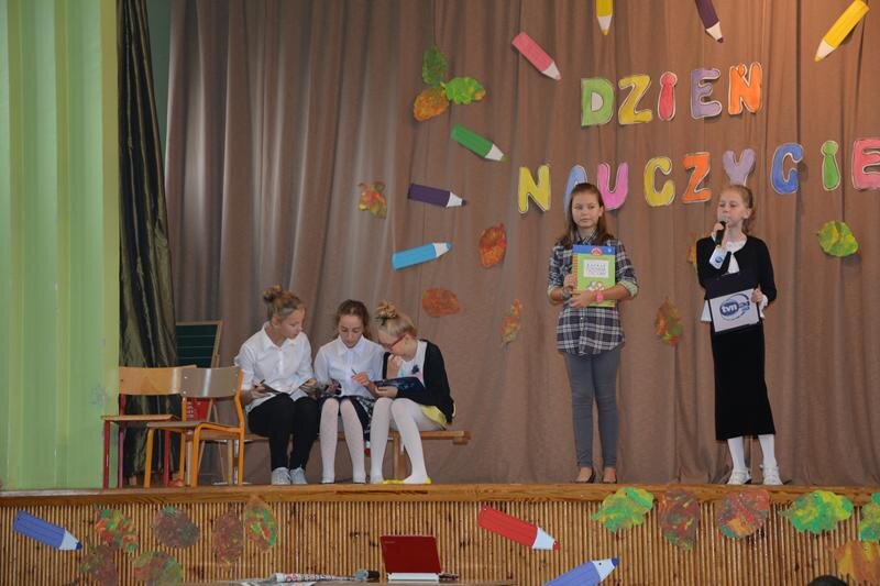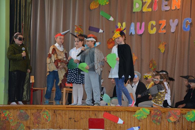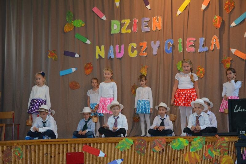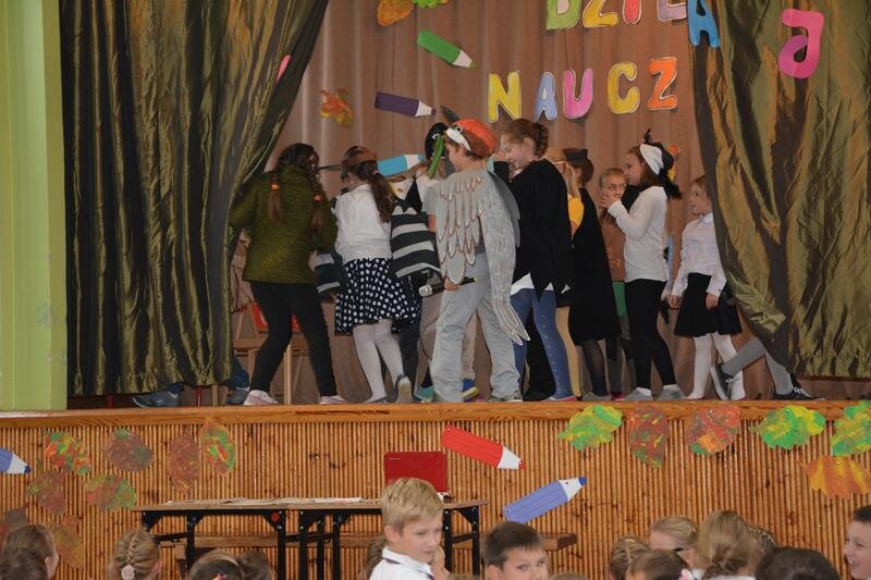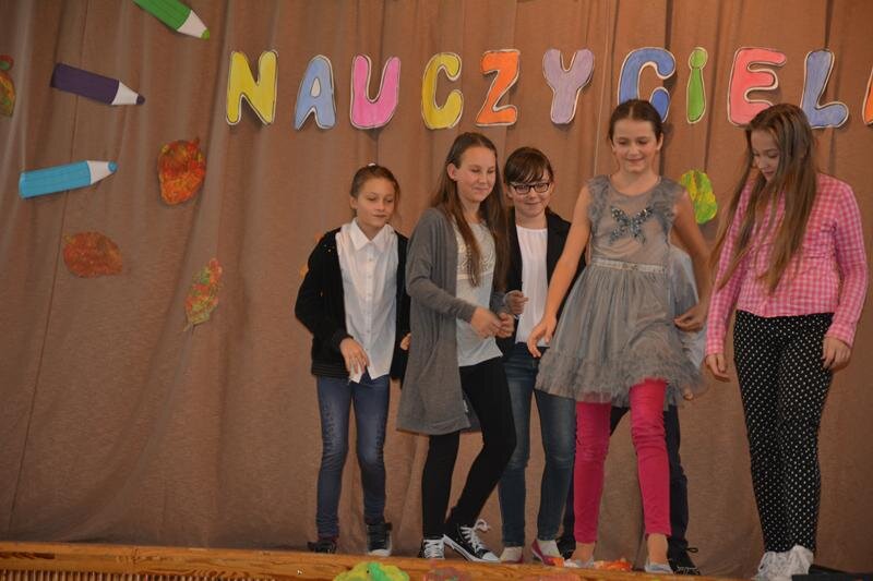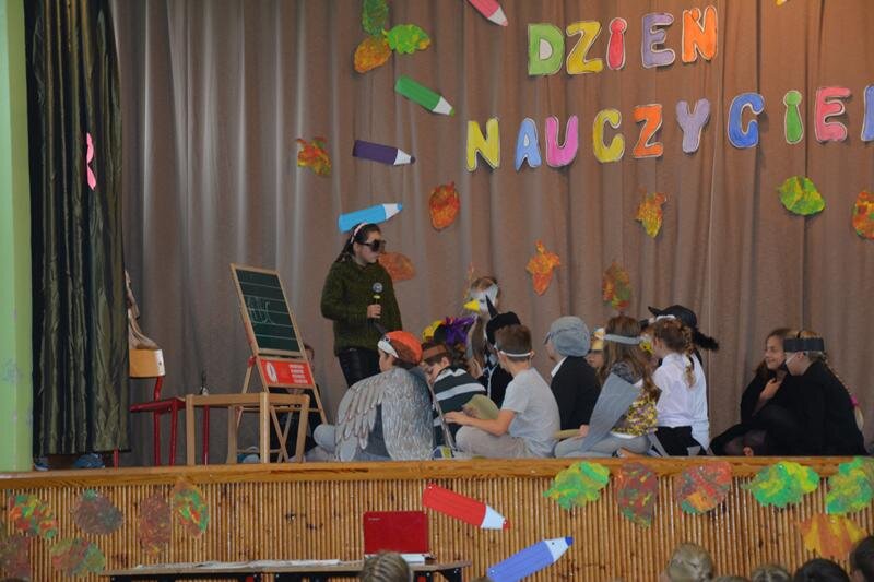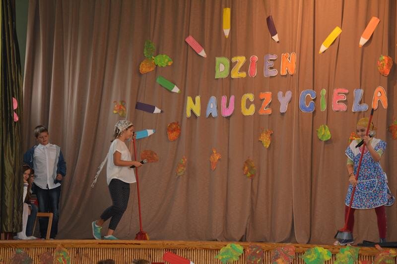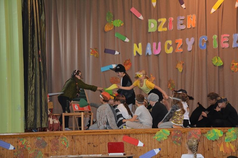 14 października świętowaliśmy Dzień Nauczyciela. Uczniowie spędzili czas w szkole bardzo przyjemnie. Najpierw z wychowawcami w klasach, a później na uroczystej akademii, która odbyła się na sali gimnastycznej. Program artystyczny zaprezentowały klasy 1a, 2a, 3a, 4a, 5ab, 6a.