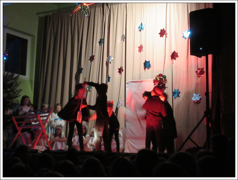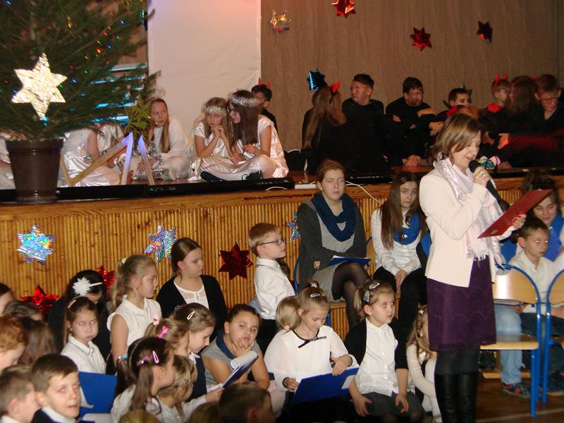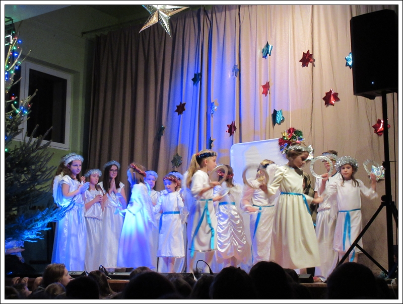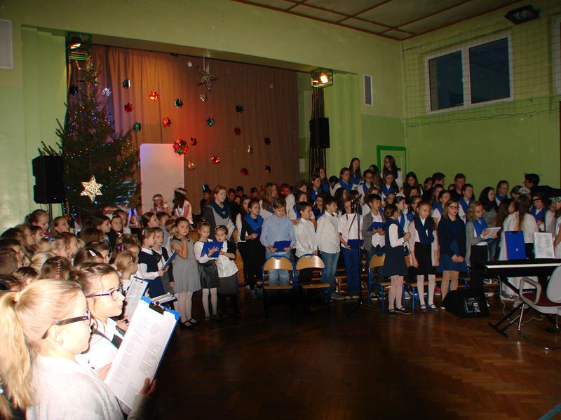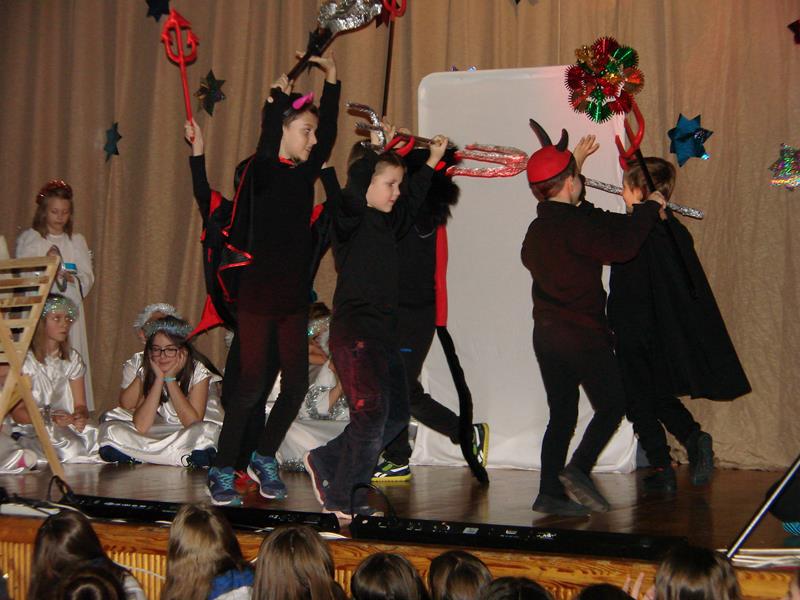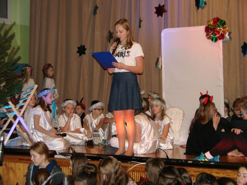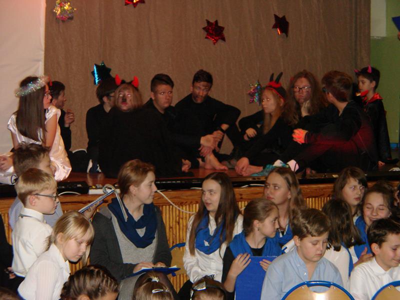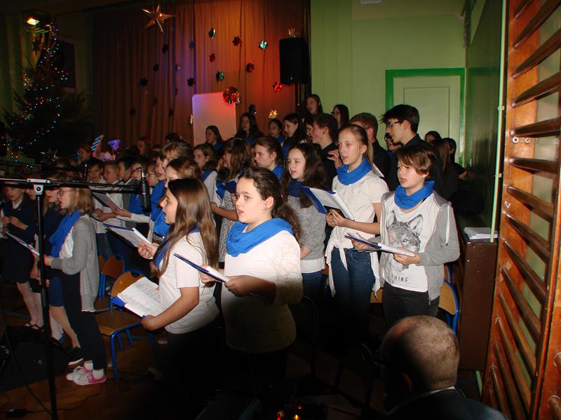 Tegoroczna "wigilijka" szkolna, na którą zaprosiliśmy różnych gości oraz naszych rodziców, rozpoczęła się w godzinach popołudniowych 15 grudnia, występem szkolnego chóru. Mogliśmy zobaczyć przedstawienie pt. "1 do 0 dla nieba" a także wsłuchać się w świąteczne kolędy i pastorałki śpiewane przez naszych uczniów i absolwentów.