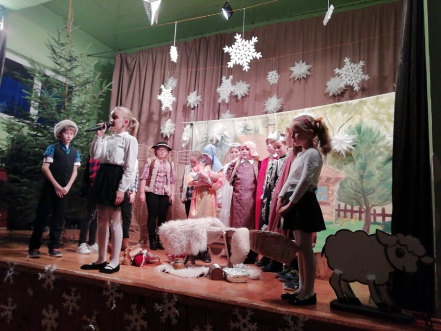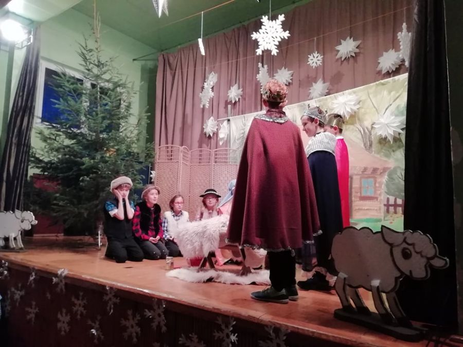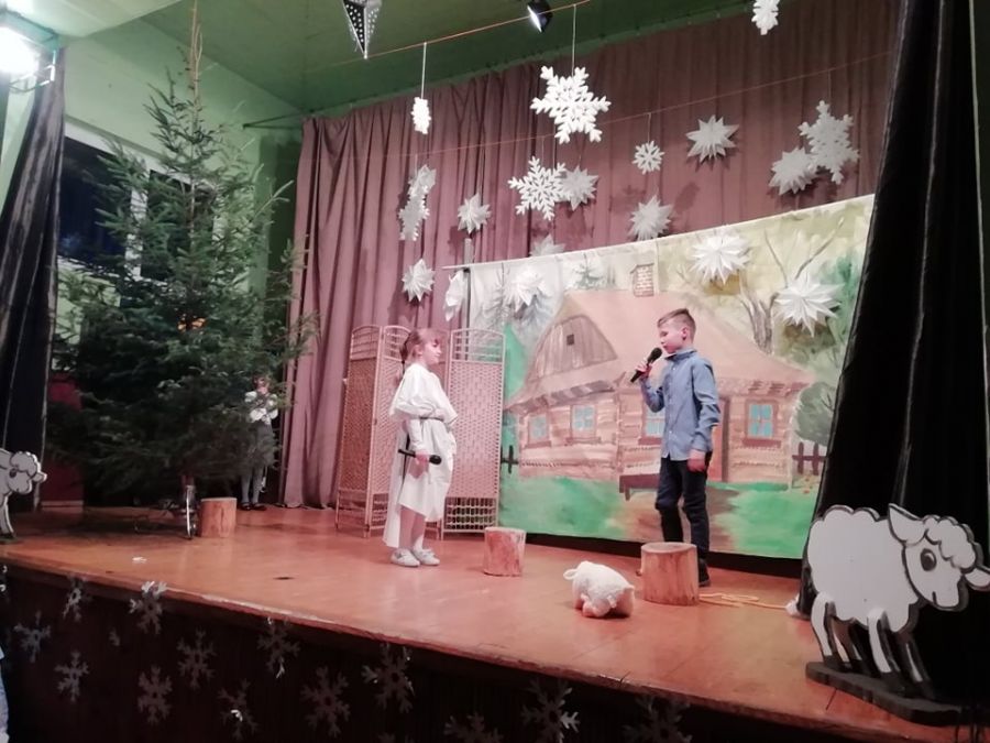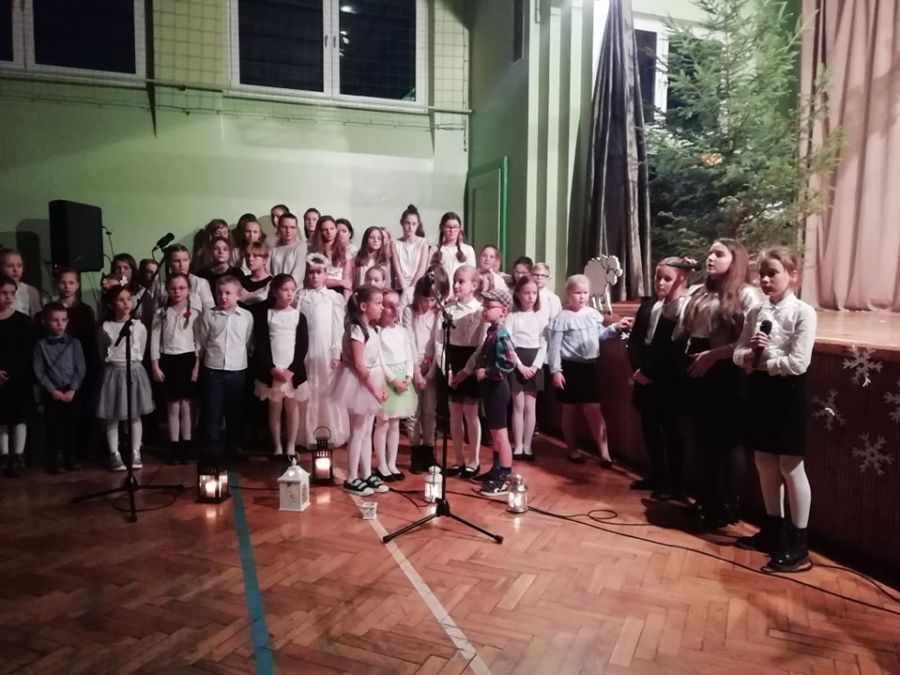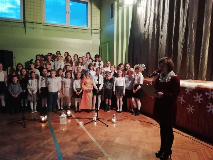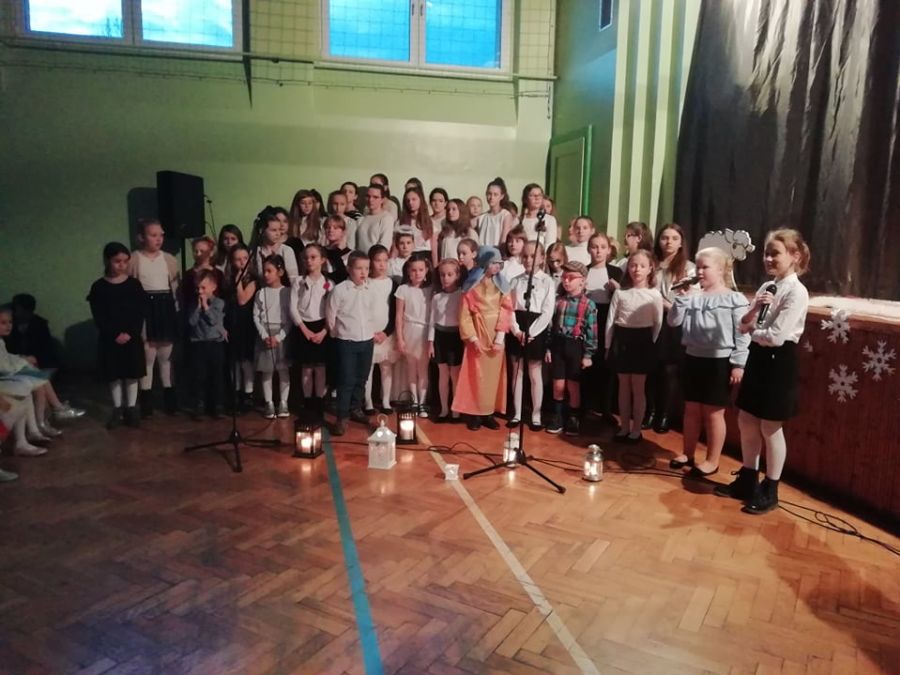 W środę, 18 grudnia o godz.16.00 odbyło się w naszej Szkole świąteczne spotkanie dla rodziców. Program przygotowali uczniowie klasy II i IV. Licznie zebrani rodzice, uczniowie i nauczyciele mogli obejrzeć dwa przedstawienia, nawiązujące do Świąt Bożego Narodzenia oraz trzy układy taneczne, w wykonaniu pierwszoklasistów. Tym razem Jasełka miały charakter gwarowy. Mali artyści nie tylko przedstawili historię narodzenia Jezusa w Betlejem, zgodnie z biblijnym przekazem ale również pokazali bogatą tradycję językową Śląska Cieszyńskiego, naszej małej Ojczyzny. Całość uświetnił chór szkolny pod dyr. Pani Aliny Kubaszczyk, który zaśpiewał kilka kolęd.