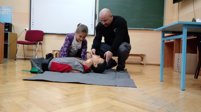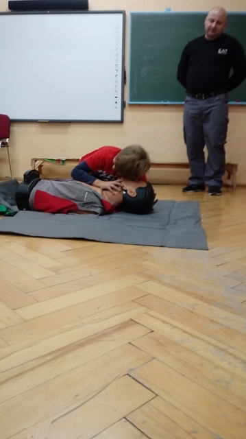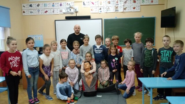 W poniedziałek rano - 4. listopada, w szkole w Kisielowie zawitał pan Łukasz. Pan Łukasz jest ratownikiem medycznym. Opowiadał o swojej pracy oraz demonstrował uczniom i nauczycielom, jak powinna wyglądać pierwsza pomoc, gdy na ulicy dostrzeże się nieprzytomną osobę. Każdy z uczestników zajęć miał okazję poćwiczyć, aby w przyszłości zrobić to jak najlepiej. Zajęcia bardzo się podobały, uczniowie byli bardzo zainteresowani i chętnie uczestniczyli w prelekcji pana Łukasza. Dziękujemy!