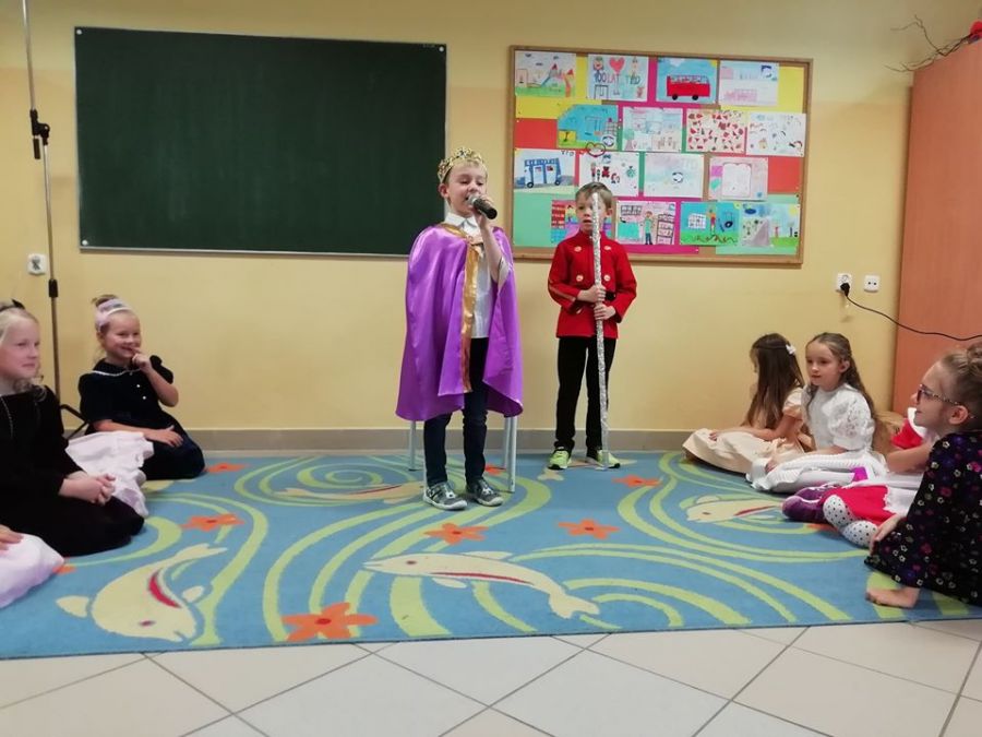 Klasa 1a przedstawiła scenkę teatralną pt.” Król Tymon pierwszy”, której tematem były reformy w królestwie Króla Tymona.