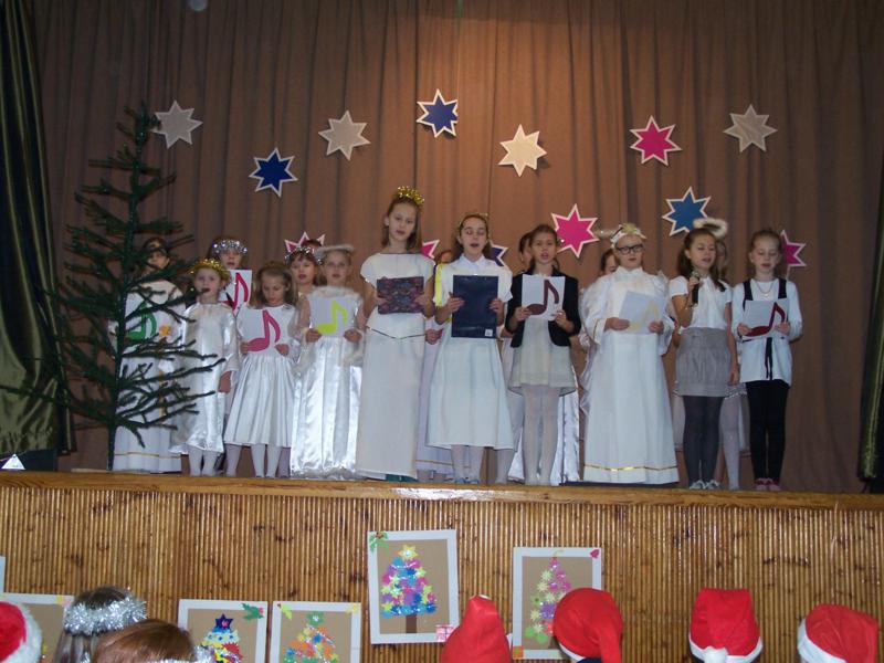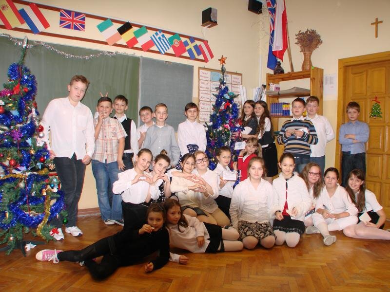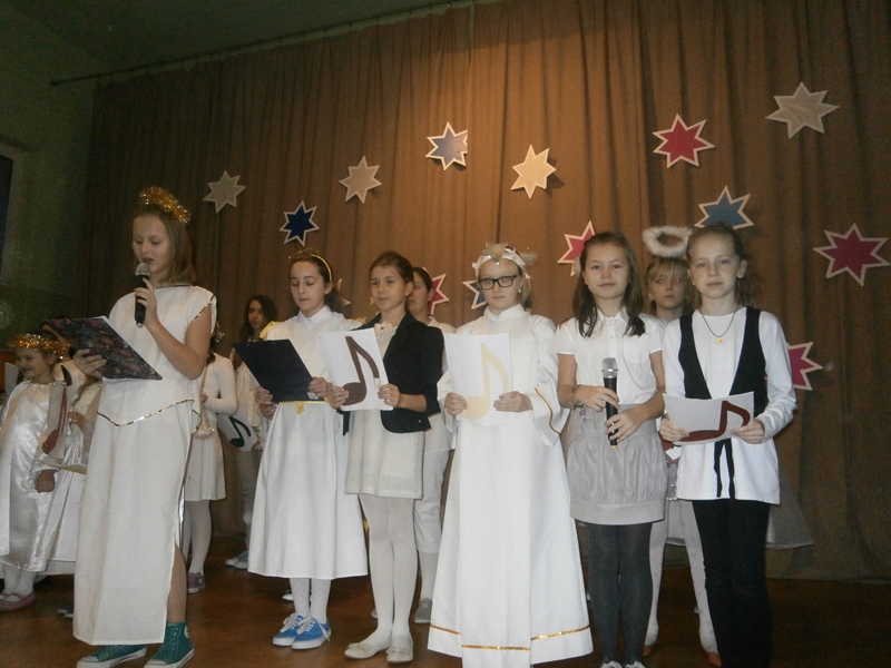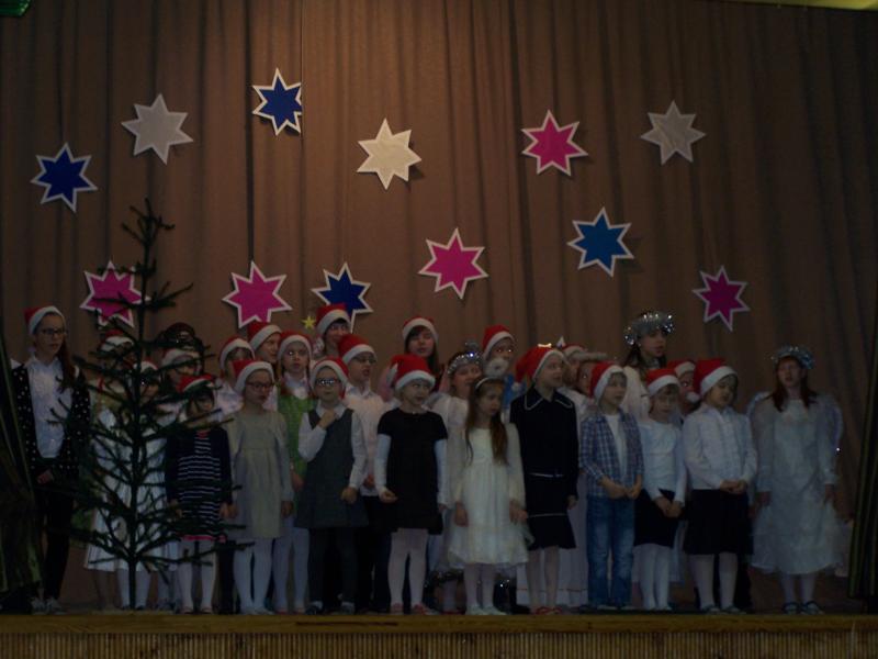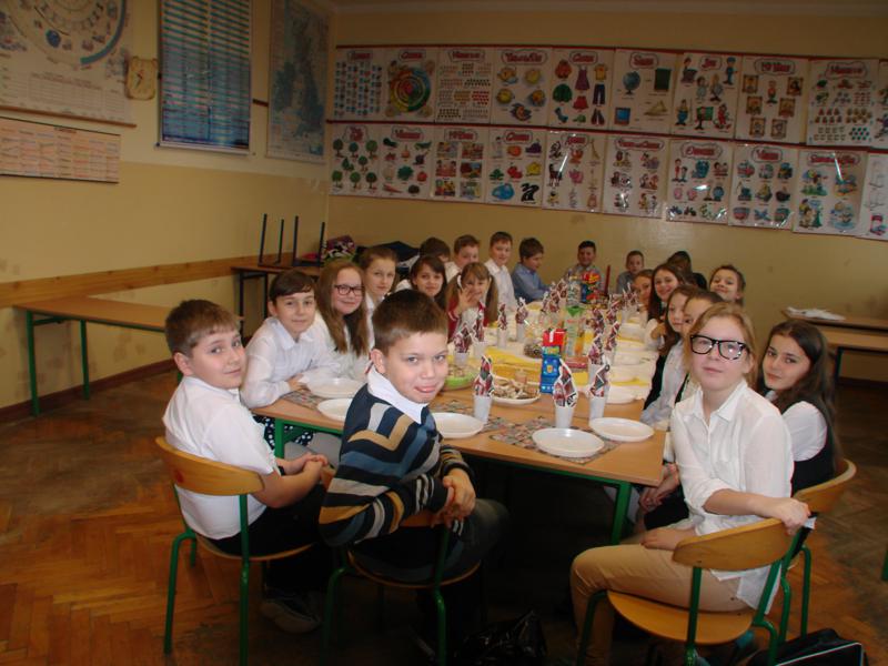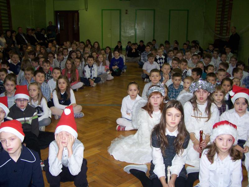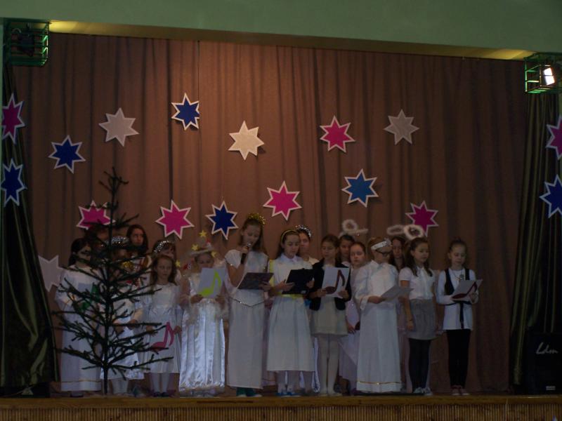 Grudzień to czas, kiedy wszyscy przygotowywujemy sie do Świąt Bożego Narodzenia. W naszej szkole w każdej klasie została ustrojona choinka i wszędzie słychać było dźwięki kolęd. 19 grudnia spotkaliśmy się wszyscy na sali gimnastycznej, by wspólnie pokolędować i zobaczyć przygotowane przez uczniów i ich opiekunów przedstawienia o tematyce bożonarodzeniowej. Następnie uczniowie z wychowawcami udali się do swoich klas, gdzie zasiedli do przygotowanych klasowych stołów wigilijnych, by spróbować przyniesionych przysmaków, podzielic się opłatkiem i złożyć sobie najlepsze świąteczno-noworoczne życzenia.