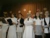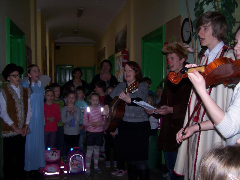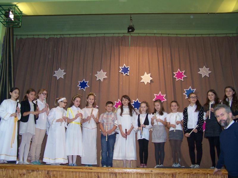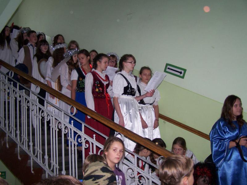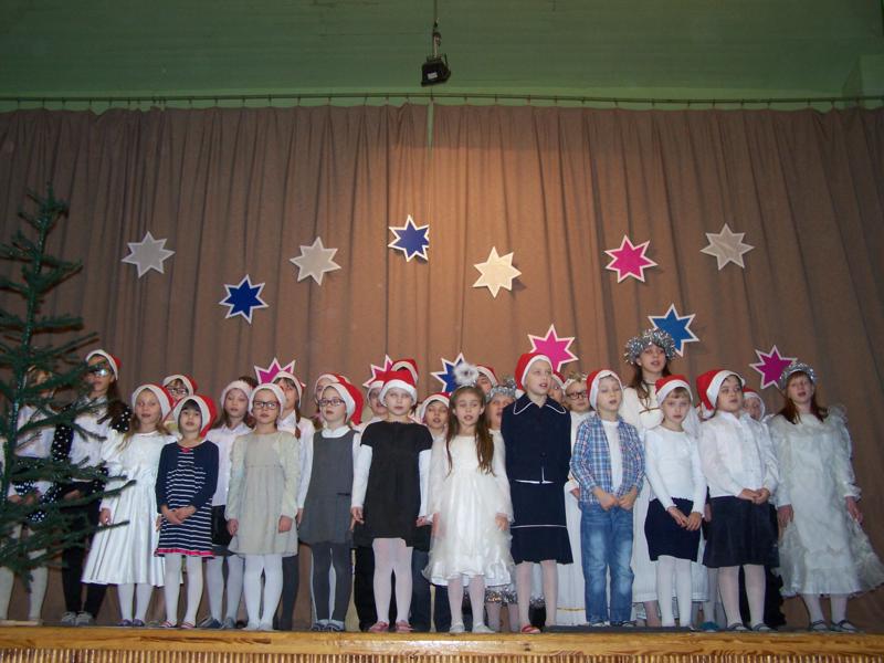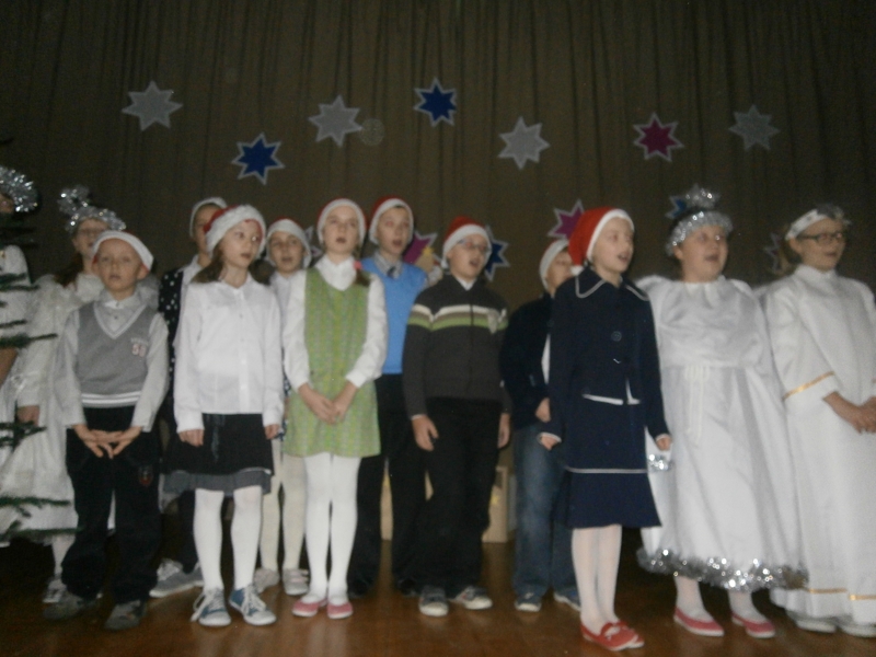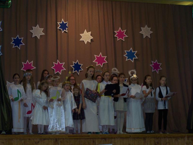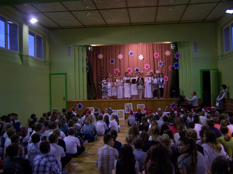 Grudzień to czas, kiedy wszyscy przygotowywujemy sie do Świąt Bożego Narodzenia. W naszej szkole w każdej klasie została ustrojona choinka i wszędzie słychać było dźwięki kolęd. 19 grudnia spotkaliśmy się wszyscy na sali gimnastycznej, by wspólnie pokolędować i zobaczyć przygotowane przez uczniów i ich opiekunów przedstawienia o tematyce bożonarodzeniowej. Następnie uczniowie z wychowawcami udali się do swoich klas, gdzie zasiedli do przygotowanych klasowych stołów wigilijnych, by spróbować przyniesionych przysmaków, podzielic się opłatkiem i złożyć sobie najlepsze świąteczno-noworoczne życzenia.