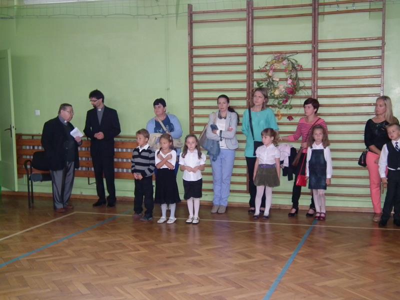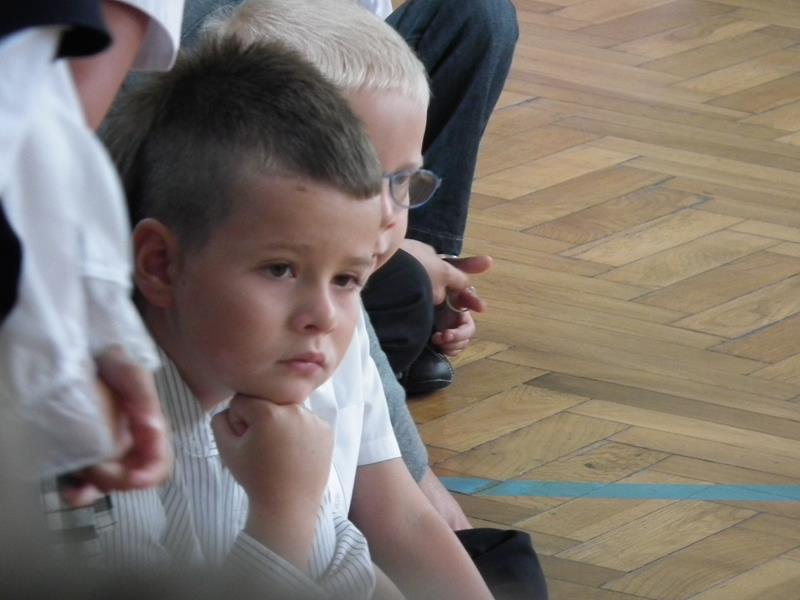 Po uroczystym rozpoczęciu roku szkolnego na boisku szkolnym, PASOWANIE na PIERWSZOKLASISTÓW odbyło się na sali gimnastycznej.