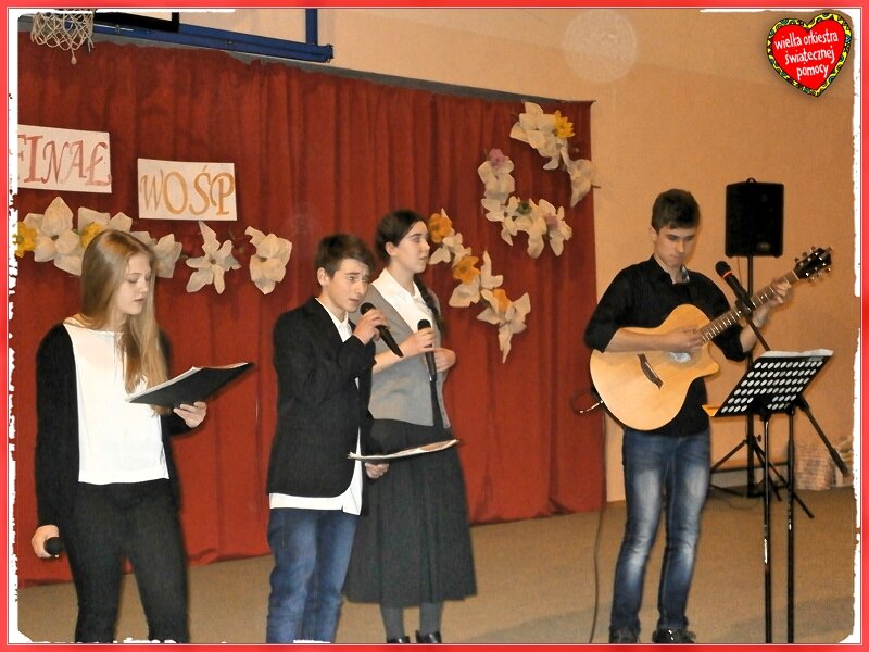 10 stycznia 2016 roku Szkoła Podstawowa w Goleszowie i Gimnazjum w Goleszowie jak co roku uczestniczyły w finale Wielkiej Orkiestry Świątecznej Pomocy. W tym roku byliśmy na sali sportowej Gimnazjum. Rozpoczęliśmy o godzinie 15:00. Na scenie pojawili się uczniowie klas 1-3, 4-6 i gimnazjum. Mogliśmy oglądać różne przedstawienia, wysłuchać licznych kolęd, piosenek w języku polskim i angielskim. Był i pyszny tort, który znalazł swojego właściciela. Wszyscy zebrani mogli wypocząć w kawiarence, gdzie było mnóstwo słodkości, uśmiechu i radości.