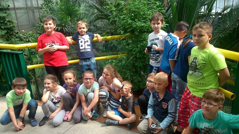 14 czerwca 2016r. uczniowie klas 2b i 2c naszej szkoły pojechali na wycieczkę. Pierwszym celem naszej wycieczki była Palmiarnia w Gliwicach. Głównym celem wycieczki było pogłębienie wiedzy przyrodniczej poprzez bezpośrednią obserwację oraz rozbudzanie zainteresowań związanych z przyrodą. Drugoklasiści zwiedzili cztery pawilony tematyczne, w których poza egzotycznymi roślinami znajdowały się również: terraria z gadami, akwaria z żółwiami, egzotyczne papugi i kanarki. Dzieci podziwiały m.in.: rośliny tropikalne, paprocie, sagowce, palmy, daktylowce, drzewo kiełbasiane, goździkowce oraz wiele gatunków kaktusów. W dalszej części stały wielkie akwaria z kolorowymi rybami z różnych stron świata. Drugim punktem wycieczki była Zabytkowa Kopalnia Srebra w Tarnowskich Górach. W tej kopalni od XV do początku XX w. wydobywano rudy ołowiu, srebra i cynku. Najpierw w budynku nadszybia wraz z przewodnikiem zwiedziliśmy ekspozycję muzealną. Późnej nowoczesną windą zjechaliśmy 40 metrów w głąb kopalni, gdzie - w prawdziwych górniczych kaskach - ponad godzinę chodziliśmy korytarzami będącymi niegdyś miejscem pracy wielu ludzi. Nasz przewodnik z ciekawością opowiadał i przybliżał nam życie górników. W sumie pokonaliśmy trasę 1700 m, w tym 270-metrowy odcinek łodziami. Spotkaliśmy również Skarbnika, który w atmosferze ciemności i tajemniczości opowiadał różne historie - legendy górników, którzy mieli okazję się z nim spotkać. Wycieczka była bardzo udana. Dostarczyła nam wielu informacji i niezapomnianych wrażeń.