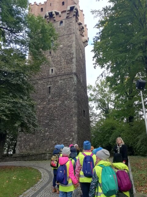 W ramach lekcji „Spotkania z historią”, w piątek 4 października uczniowie klasy 2b wraz z opiekunami ze Szkoły Podstawowej w Goleszowie wybrali się na wycieczkę do Cieszyna. Głównym celem wycieczki było poznanie zabytków Cieszyna. Uczniowie przygodę zaczęli od zwiedzania Góry Zamkowej. Podczas tego przystanku poznali historię Wieży Piastowskiej oraz Wieży Ostatecznej Obrony. Zobaczyli rotundę Świętego Mikołaja , Pałac Myśliwski Habsburgów oraz panoramę rozciągającą się na Czeski Cieszyn. Znaleźliśmy również chwilę na zjedzenie śniadania w pięknej, jesiennej scenerii oraz zbieranie kasztanów. Kolejnym punktem naszej wycieczki był spacer Cieszyńską Wenecją. Po pokonaniu kilkunastu schodów dotarliśmy do Studni Trzech Braci. Po krótkiej przerwie wyruszyliśmy spacerkiem dalej, aby zobaczyć mural Ireny Sendlerowej. Na naszej mapie zabytków nie mogło zabraknąć przystanku na Cieszyńskim Rynku. Wycieczkę zakończyliśmy zabawami w Parku Pokoju. Wycieczka została zorganizowana przez