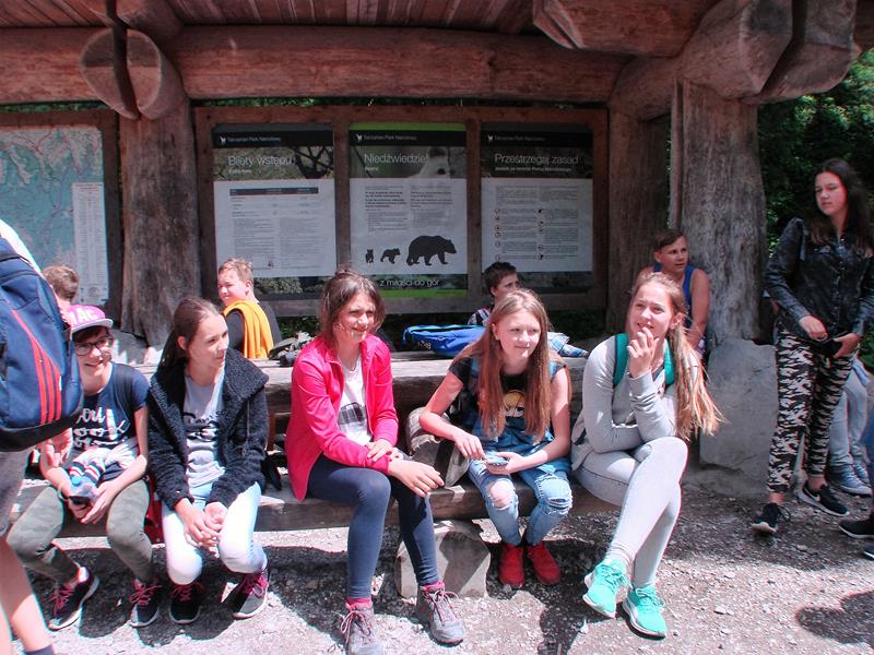 Wycieczka na zakończenie klasy 6 w Szkole Podstawowej w Goleszowie Na zakończenie klasy szóstej, podsumowując tegoroczny rok szkolny, postanowiliśmy wyjechać na klasową wycieczkę do Zakopanego. Tak więc 13 czerwca zebraliśmy się wszyscy o godzinie 6 rano na parkingu koło naszej szkoły, by wyruszyć na dwa wolne od szkolnych obowiązków dni. Tak oto rozpoczęła się wspólna wyprawa klas 6a i 6b do ZAKOPANEGO. Wędrówki szlakami naszych pięknych Tatr rozpoczęliśmy od przejazdu malowniczą trasą przez Przełęcz Krowianki położoną na wysokości 1010 m n.p.m. Następnie maszerowaliśmy przepiękną Doliną Kościeliską. Wraz z przewodnikiem tatrzańskim mijaliśmy przecudne widoki, słuchaliśmy ciekawostek związanych z tym miejscem a wszystko to w blasku słońca i ciepłego wiaterku płynącego wprost w wysokich gór. Po krótkiej przerwie i posiłku nad brzegami chłodzącej wody, ruszyliśmy dalej pokonując przeszkody w postaci kamieni, drabin i wspinaczek – ale było warto. Kto był to wie . Kolejnym punktem naszego intensywnego programu był przejazd autokarem pod wyciąg na Butorowy Wierch, a następnie wyjazd kolejką krzesełkową na szczyt tej góry. Tam spacerowym krokiem udaliśmy się z Butorowego Wierchu na Gubałówkę skąd zjechaliśmy kolejką szynową do Zakopanego. Trochę zmęczeni, ale zadowoleni z pokonania dość dalekiej trasy udaliśmy się do miejsca zakwaterowania - do Szaflar. Tam czekała już na nas obiadokolacja. Całodniowy spacer i opalenizna, którą nabyliśmy w ciągu dnia oraz wieńczący ten dzień obiad nie był jednak ostatnim punktem naszego programu. Późnym popołudniem, wolnym krokiem przeszliśmy do nieopodal położonych basenów termalnych – spedziliśmy tam 2,5 godziny korzystając z różnych atrakcji i napawając się widokiem w oddali położonych gór. Tak zakończyliśmy pierwszy dzięń naszej wycieczki. Po prawie przespanej nocy, następny dzień rozpoczęliśmy oczywiście od wspólnego śniadania. Tuż po nim autokarem udaliśmy się na szybkie zakupy pamiątkowe na Krupówkach, a następnie do Kuźnic, aby wjechać kolejką na Kasprowy Wierch. Szczyt powitał nas w chmurach i z temperaturą +3̊C. Wkrótce jednak pogoda stała się dla nas łaskawa odsłaniając cudowny widok na nasze i słowackie Tatry. Udaliśmy się więc na spacer szczytami gór, wchłaniając ich piękno, przestrzeń i powiew zimnego, lecz czystego powietrza. Po zejściu z Kasprowego, zjechaniu kolejką, przejechaliśmy autokarem do „Jaszczurówki”. Jest to dzielnica Zakopanego położona w jego wschodniej części przy drodze Oswalda Balzera do Łysej Polany i Morskiego Oka około 4 kilometry od centrum Zakopanego. Tam zwiedziliśmy kościółek na Jaszczurówce - kaplica pw. Najświętszego Serca Jezusa. Jest to klasyczne dzieło wzniesione w stylu zakopiańskim. Kapliczka została zbudowana w latach 1905 – 07, a jej projektantem był Stanisław Witkiewicz. Ciekawostką jest fakt, że kaplica wykonana jest bez użycia jednego gwoździa. Cała konstrukcja postawiona jest na kamiennej podmurówce. Na zakończenie naszej wyprawy podjechaliśmy pod Wielką Krokiew, a stamtąd w drogę powrotną do Goleszowa, gdzie dotarliśmy o godzinie 20:00 witani przez naszych rodziców. Serdecznie dziękuję wszystkim za miło spędzony czas, zarówno Wam drodzy uczniowie jak i opiekunom tejże wyprawy. Wraz z Panią Aleksandrą Stokłosą-Wapienik składamy podziękowania dla biura turystycznego „WATRA”, które czuwa nad przebiegiem naszych wycieczek, dziękujemy pani Pilot za ciekawostki podczas podróży oraz Kierowcy za bezpieczne dowiezienie nas do każdego zakątka tej trasy. Tekst i zdjęcia Dorota Wisełka