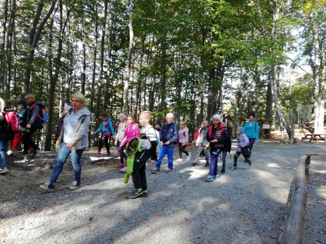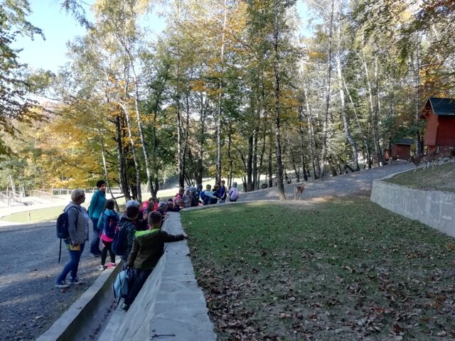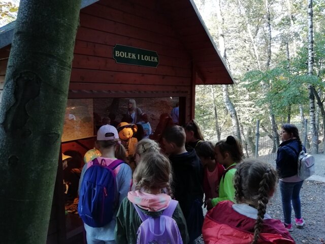 w wycieczce do Leśnego Parku Niespodzianek w Ustroniu. Głównym celem wycieczki było utrwalenie i poszerzenie wiadomości dotyczących znajomości otaczającej nas przyrody – życia roślin i zwierząt oraz integracja zespołu dzieci poprzez wspólne spędzanie czasu nauki i rekreacji. Podążając ścieżkami przyrodniczo – dydaktycznymi podziwialiśmy i rozpoznawaliśmy różne gatunki roślin i zwierząt. Zapoznaliśmy się z wieloma tablicami edukacyjnymi rozmieszczonymi na terenie parku, które były cennym źródłem informacji o trybie życia zwierząt oraz funkcjonowaniu różnych ekosystemów w przyrodzie. Niebywałą atrakcją dla uczestników wycieczki była stacja ptaków drapieżnych obsługiwana przez wykwalifikowanych sokolników. Dzieci podziwiały loty skrzydlatych drapieżników (orła, sokoła, myszołowa). Ponadto zapoznały się z budową, trybem życia i sposobem polowania ptaków drapieżnych oraz miały możliwość zobaczenia wielu gatunków ptaków żyjących w naszym kraju. Uczniowie podziwiali jelenie, sarny, daniele, muflony, dziki z małymi warchlakami, kozy, żubry, żbiki. Zwiedziliśmy również Centrum Edukacji Przyrodniczo – Leśnej, gdzie mogliśmy zobaczyć eksponaty zwierząt z Ameryki Północnej, Afryki i Europy oraz trofea łowieckie. Ponadto zobaczyliśmy alejką bajkową, w której znajduje się 11 ruchomych ekspozycji znanych nam bajek, takich jak Bolek i Lolek, Czerwony Kapturek czy Kot w Butach. Bohaterowie bajek, śpiewają czasem rozmawiają, przy charakterystycznej dla danej bajki melodii. Będąc w Leśnym Parku Niespodzianek mieliśmy możliwość obcowania z naturą i dziką przyrodą. Podziwialiśmy piękny krajobraz Beskidu Śląskiego. Wycieczka ta dostarczyła mam także poprzez kontakt z przyrodą wielu wrażeń, nie zabrakło też czasu na wybór odpowiednich pamiątek.