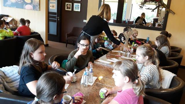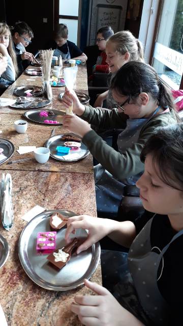W piątek 04.10.2019 uczniowie klasy 5b i 5c gościli w Pijalni czekolady Mount Blanc w Wiśle,gdzie wzięli udział w warsztatach czekolady.W ramach spotkania degustowali trzy rodzaje pitnej czekolady, dowiedzieli się o uprawie kakao oraz wykonywali czekoladki. Podczas spaceru po Wiśle odwiedzili Dom Zdrojowy, gdzie mieści się czekoladowa figura Adama Małysza oraz galerię trofeów mistrza.Zadowoleni uczniowie wrócili ze słodkimi upominkami.