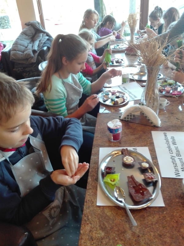 W piątkowe, mikołajkowe przedpołudnie uczniowie klasy 6c wybrali się na warsztaty do Pijalni czekolady Mount Blanc w Wiśle.W ramach spotkania degustowali różne rodzaje pitnej czekolady oraz wykonywali czekoladki.