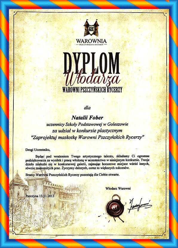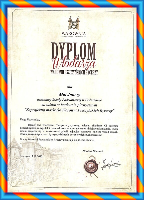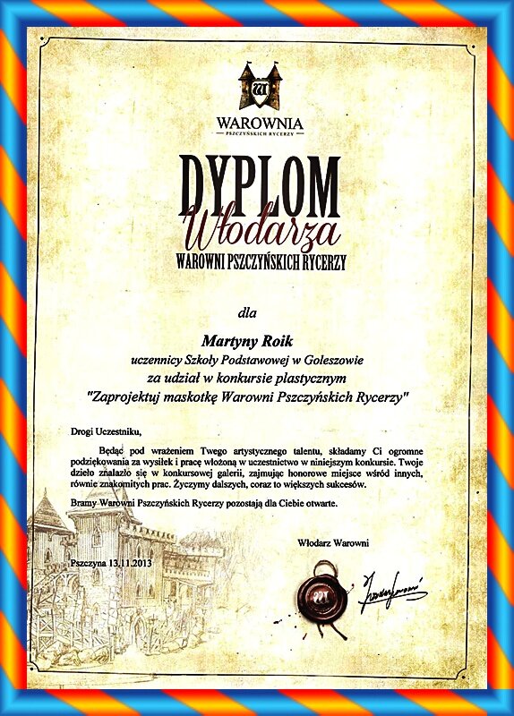 Klasa 3a została wyróżniona w konkursie "Zaprojektuj Maskotkę Warowni Pszczyńskich Rycerzy".