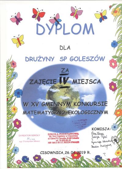 XV GMINNY KONKURS MATEMATYCZNO-EKOLOGICZNY